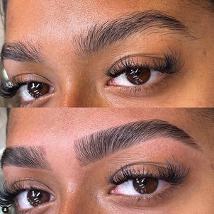 Brow lamination restructures and lifts the brow hairs into a sleeker, fuller position, giving a brushed-up, editorial look that lasts for weeks. It’s perfect for taming unruly hairs and achieving that smooth, lifted brow effect seen in modern beauty trends.